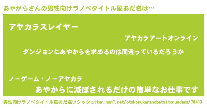| ヒーロー風カッコイイあだ名 | 『魔戒騎士アヤ』『スーパーアヤカラ』 |