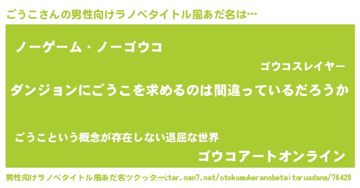 | 女子向けラノベタイトル風あだ名 | 『ごうこは平凡を望む』 |