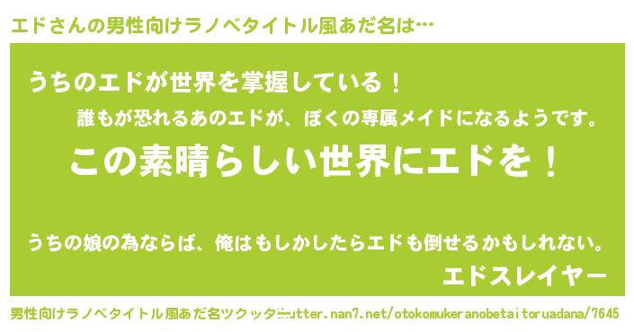 | 胡散臭い通販商品みたいなあだ名 | 『あなたにだけ特別に提供する世界で10本だけ現存している希少なブランデー…その名も「エド」』 |