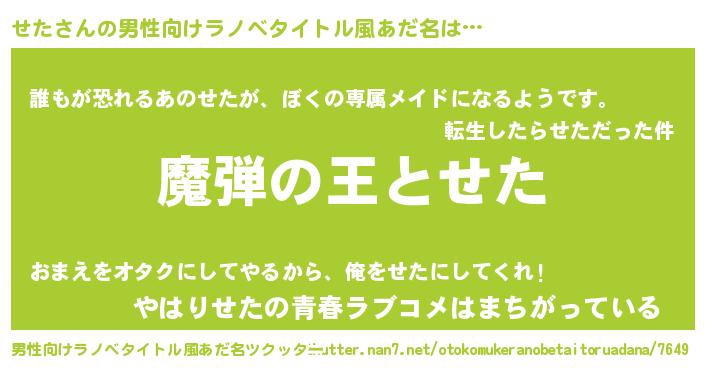 | ポケモン風あだ名 | 『セータイ』『ゼニセタ』『セタダネ』 |