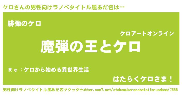 | 女子向けラノベタイトル風あだ名 | 『乙女ゲームの破滅フラグしかない悪役ケロに転生してしまった…』 |