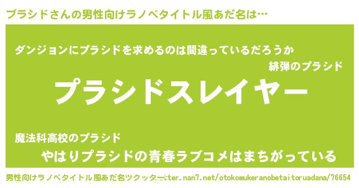 | ヒーロー風カッコイイあだ名 | 『暗黒騎士プラ』『ウルトラプラシドマン』 |