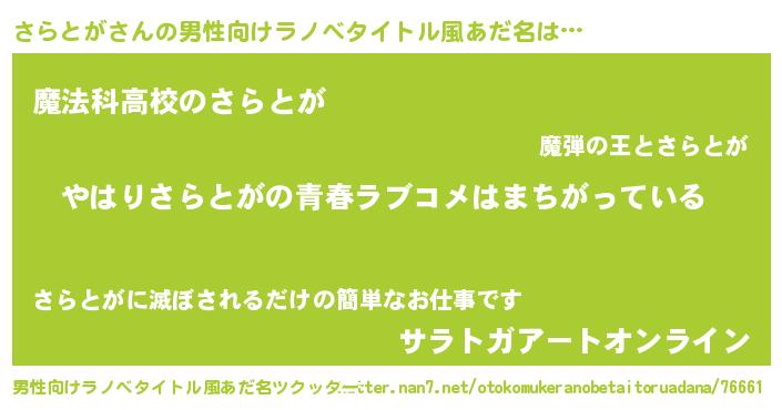 | 女子向けラノベタイトル風あだ名 | 『さらとがの雑貨屋さん』 |