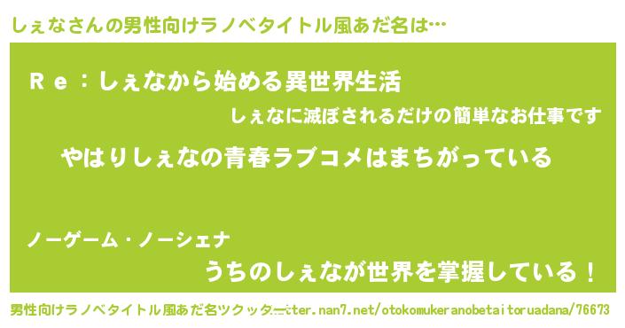 | 女子向けラノベタイトル風あだ名 | 『しぇなの雑貨屋さん』 |