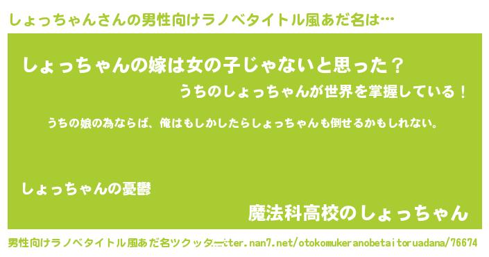 | 女子向けラノベタイトル風あだ名 | 『しょっちゃんの婚約者』 |