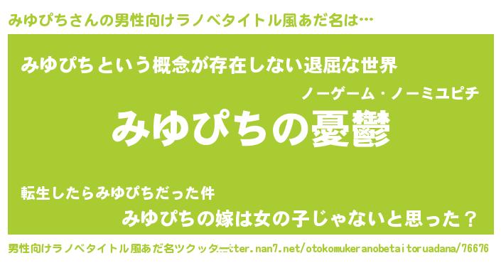 | 胡散臭い通販商品みたいなあだ名 | 『必ず成功する水晶球…その名も「みゆぴち」』 |