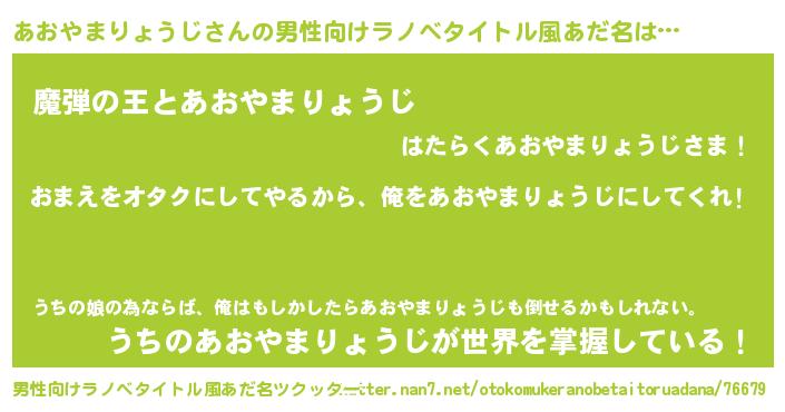 | 女子向けラノベタイトル風あだ名 | 『あおやまりょうじ夫妻のなれそめ』 |