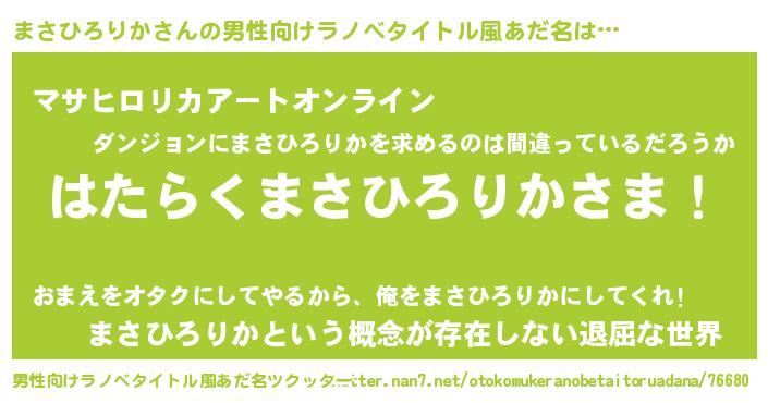 | ヘコむあだ名 | 『まさにー』『まさひろりか(笑)』 |
