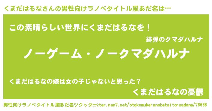 | 胡散臭い通販商品みたいなあだ名 | 『モンドセレクションを受賞した隕石のかけら…その名も「くまだはるな」』 |