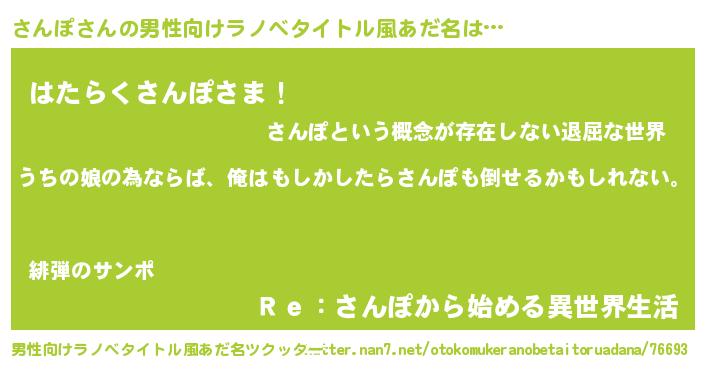 | 胡散臭い通販商品みたいなあだ名 | 『運命の人と巡り会える高級そうな壺…その名も「さんぽ」』 |