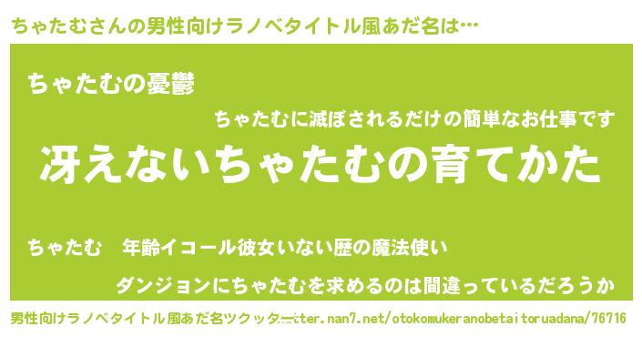 | 胡散臭い通販商品みたいなあだ名 | 『モテモテ間違いなし霊験あらたかなお札…その名も「ちゃたむ」』 |