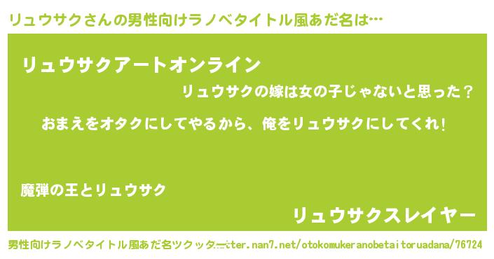 | 女子向けラノベタイトル風あだ名 | 『リュウサク夫妻のなれそめ』 |