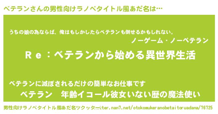 | ファンタジー風あだ名 | 『ゼベテトゥ』『エターナルベテランー』 |