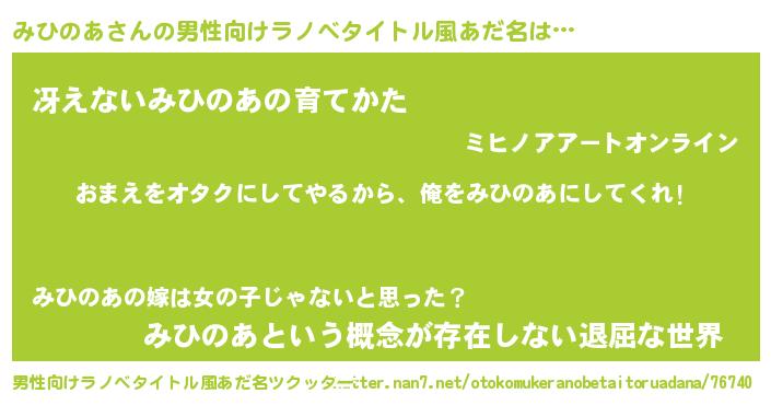 | ヘコむあだ名 | 『みひのあ(笑)』『みひにー』 |