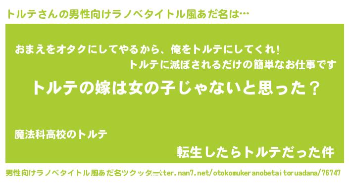 | 女子向けラノベタイトル風あだ名 | 『トルテの卵を拾いまして』 |