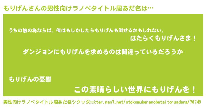 | 女子向けラノベタイトル風あだ名 | 『もりげんは平凡を望む』 |