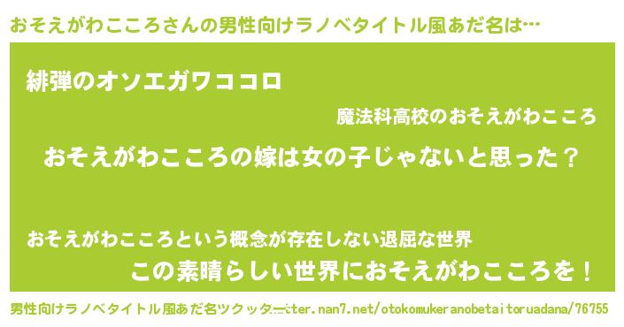 | 女子向けラノベタイトル風あだ名 | 『おそえがわこころ様がみてる』 |