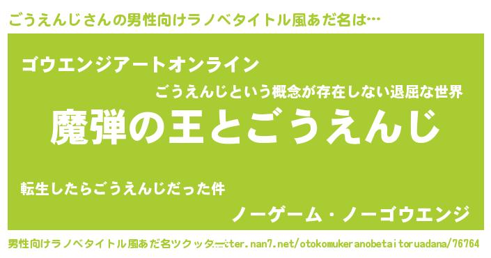 | 女子向けラノベタイトル風あだ名 | 『ごうえんじが死なない童話 林檎のごうえんじの診療簿』 |