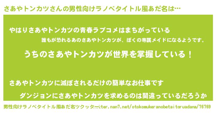 | 女子向けラノベタイトル風あだ名 | 『男装さあやトンカツの憂鬱な任務』 |