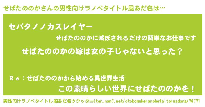 | 意味不明あだ名 | 『とにかく怪しいせばたののか』 |