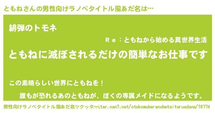 | ヒーロー風カッコイイあだ名 | 『ネオトモネ』『超時空戦士トモネ』 |