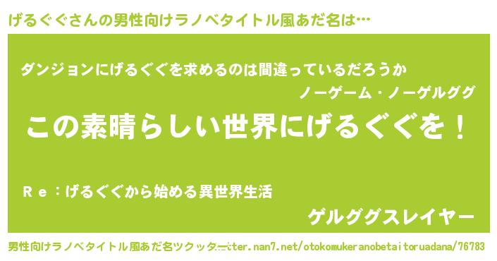 | 意味不明あだ名 | 『住所不定無職げるぐぐ(7歳)』 |