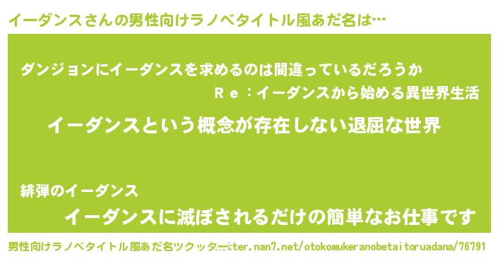 | 意味不明あだ名 | 『永久保存イーダンス』『自称イーダンス』 |