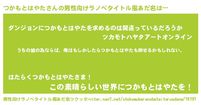 | 胡散臭い通販商品みたいなあだ名 | 『運命の人と巡り会える高級そうな壺…その名も「つかもとはやた」』 |