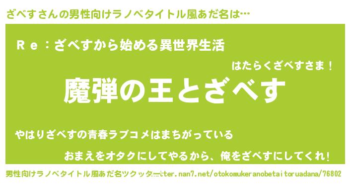 | 女子向けラノベタイトル風あだ名 | 『ざべすが死なない童話 林檎のざべすの診療簿』 |
