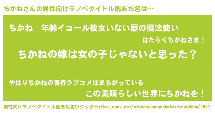 | 女子向けラノベタイトル風あだ名 | 『ちかね様がみてる』 |