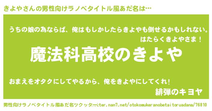 | ファンタジー風あだ名 | 『ゼキヨトゥ』『エターナルキヨヤー』 |
