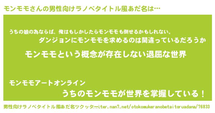 | 意味不明あだ名 | 『永久保存モンモモ』『ペロリンモンモモ』 |