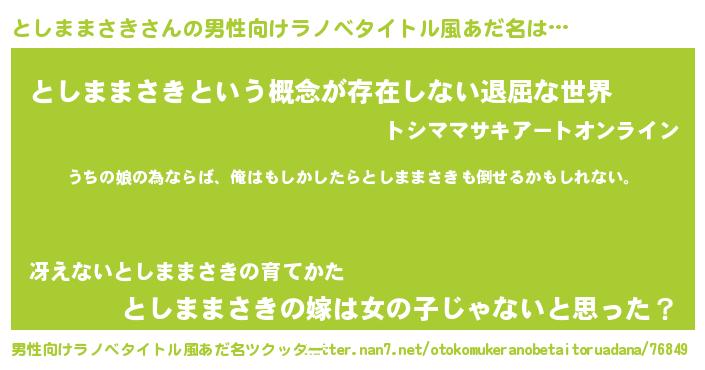 | 意味不明あだ名 | 『としままさきフォーエバー』 |