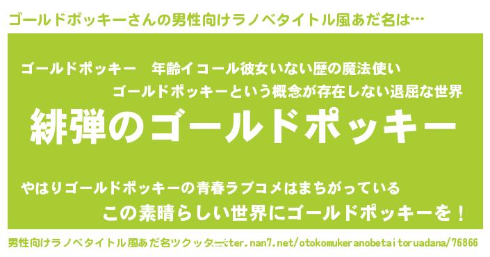 | 伝説のあだ名 | 『聞きしに勝る暗殺者ゴールドポッキー』 |