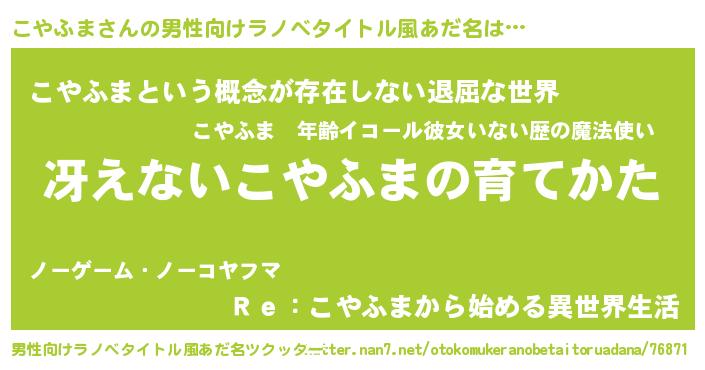 | 女子向けラノベタイトル風あだ名 | 『シンデレラこやふま家の靴箱館』 |