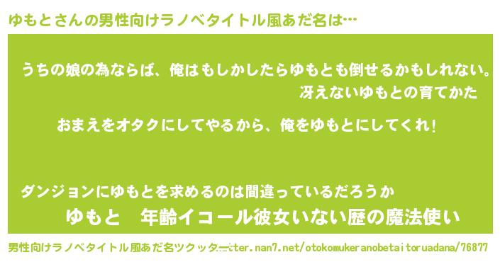 | 女子向けラノベタイトル風あだ名 | 『ゆもと夫妻のなれそめ』 |