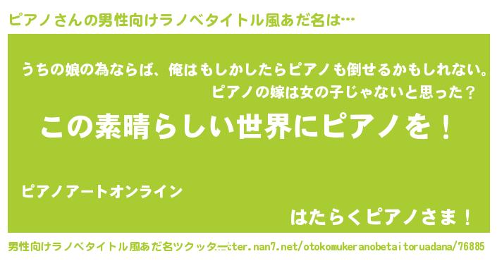 | 女子向けラノベタイトル風あだ名 | 『乙女ゲームの破滅フラグしかない悪役ピアノに転生してしまった…』 |