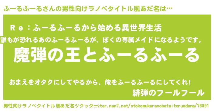 | 胡散臭い通販商品みたいなあだ名 | 『ハリウッド女優が絶賛した世界で10本だけ現存している希少なブランデー…その名も「ふーるふーる」』 |