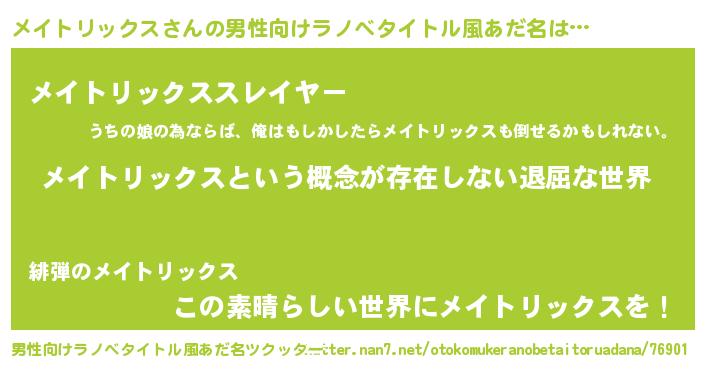 | 胡散臭い通販商品みたいなあだ名 | 『絶対に幸福をもたらす水素水…その名も「メイトリックス」』 |