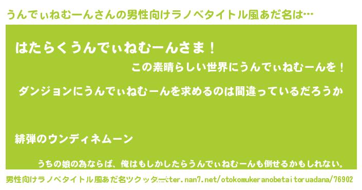 女子向けラノベタイトル風あだ名 | 『うんでぃねむーんは平凡を望む』 |