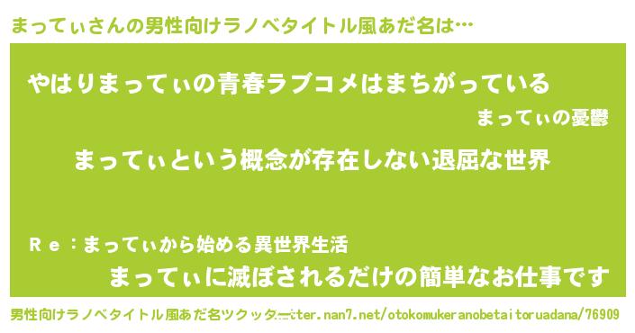 | 女子向けラノベタイトル風あだ名 | 『異世界で失敗しない100のまってぃ』 |