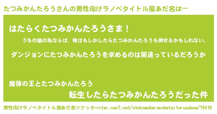 | 胡散臭い通販商品みたいなあだ名 | 『信頼と実績のペンダント…その名も「たつみかんたろう」』 |