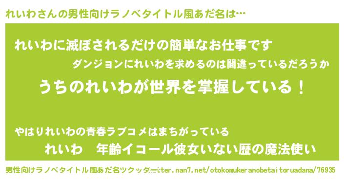 | ヒーロー風カッコイイあだ名 | 『天弓騎士レイ』『ウルトラれいわマン』 |
