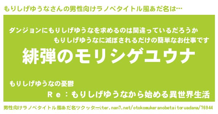 | 女子向けラノベタイトル風あだ名 | 『シンデレラもりしげゆうな家の靴箱館』 |