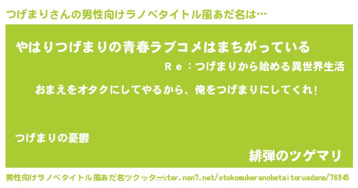 | 胡散臭い通販商品みたいなあだ名 | 『100人中100人が認めたイリジウム磁石…その名も「つげまり」』 |