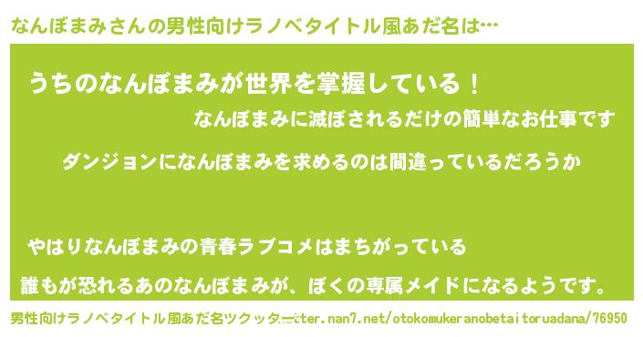 | 女子向けラノベタイトル風あだ名 | 『なんぼまみは平凡を望む』 |