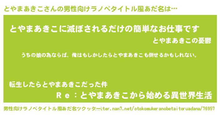 | 女子向けラノベタイトル風あだ名 | 『とやまあきこの婚約者』 |