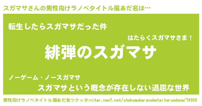 | ヘコむあだ名 | 『スガマサ(震え声)』『スガ太郎』 |