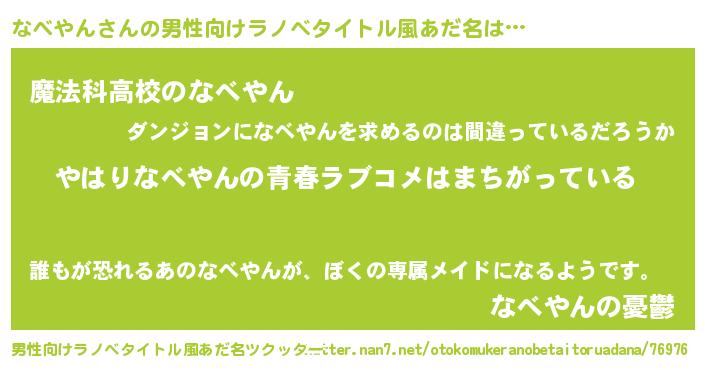 | ファンタジー風あだ名 | 『エターナルナベヤンー』『ゼナベトゥ』 |