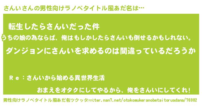 | ヘコむあだ名 | 『さんぷりん』『なまこ酢』 |